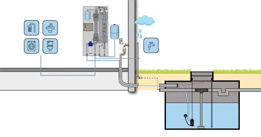 - De drukverhogingspomp is in de regenwatertank geplaatst. Dat heeft als voordeel dat er inpandig voor de pomp geen ruimte benodigd is en dat er geen geluidshinder kan optreden.